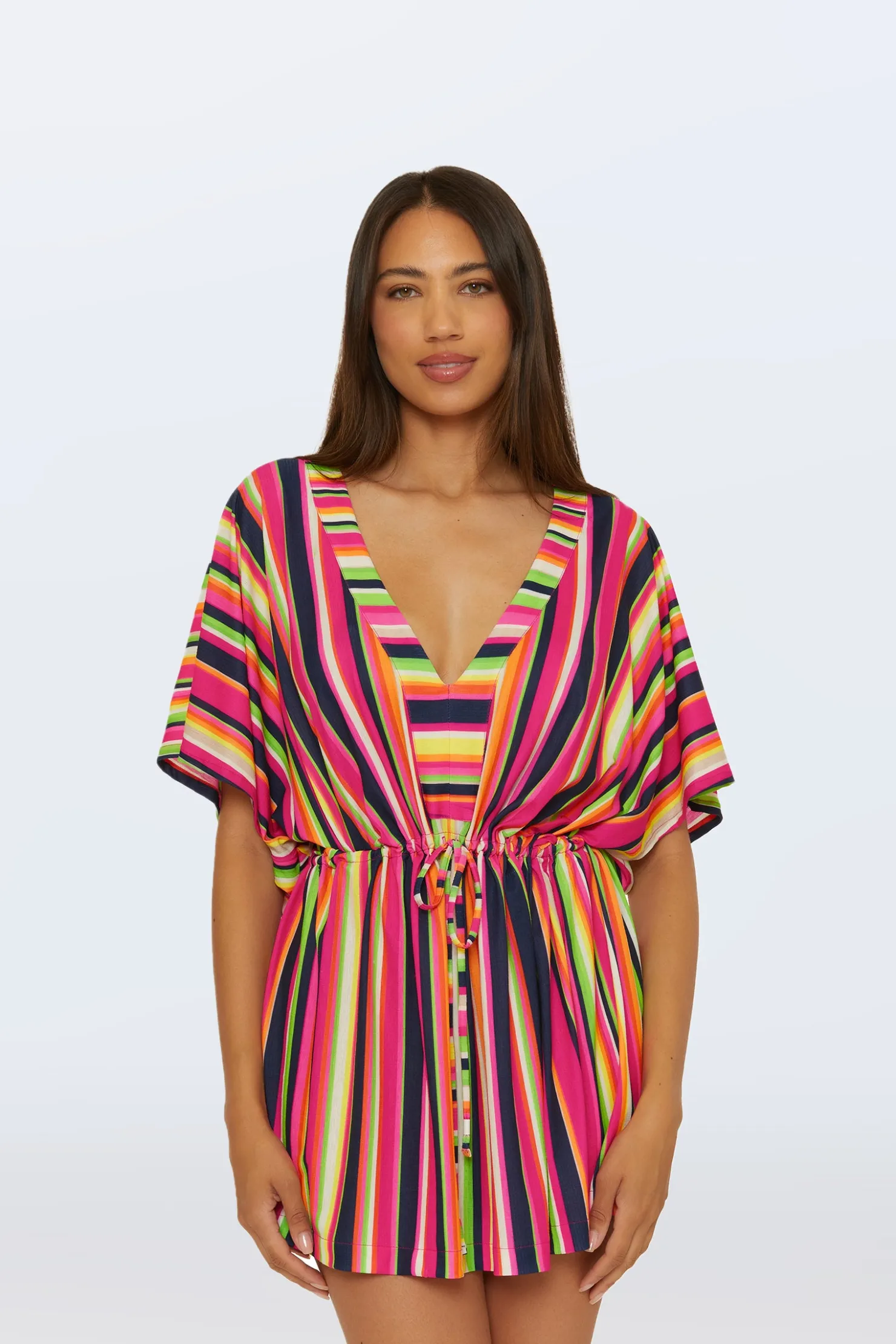 Trina Turk Cinch Tunic V-Neck Cover-Up – Splash Stripe Multi Clearance